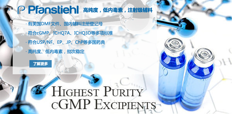“熱烈祝賀Pfanstiehl的注射級甘氨酸Glycine(G-140)喜獲CDE登記號F20250000403, 這是Pfanstiehl產品獲得的第18個CDE登記號!”甘氨酸在醫藥輔料制劑中應用廣泛,, 可作為緩沖劑,增溶劑,穩定劑等,具有諸多優勢。Pfanstiehl秉承一貫高品質理念,為滿足全球生物制藥行業對于高品質甘氨酸的需求,隆重推出的注射級甘氨酸Glycine (G-140), 具有超高純度,超低內毒素,超低金屬殘留的特點,單獨檢測29種金屬離子,并且新增DNA,RNA,DNA酶,RNA酶和脂肪酶,亞硝酸鹽等多項質量指標的檢測,符合多國藥典規定(USP, EP, BP, JPE, ChP),可用于生物治療性藥物和疫苗的生產。產品信息:· 產品名稱:Glycine, High Purity, Low Endotoxin, Low Metals, USP, EP, BP, JPE, ChP (G-140)· 中文名稱:甘氨酸· 分子式:C2H5NO2· 分子量:75.07 g / mol· CAS號:56-40-6· 產品貨號:G-140產品特點: · 超高純度,超低內毒素,超低微生物含量,超低金屬雜質殘留· 質量指標新增DNA,RNA,DNA酶,RNA酶,脂肪酶和亞硝酸鹽檢測· 符合多國藥典:USP, EP, BP, JPE, ChP· 符合ICH Q3D標準· 符合GMP標準· 已獲DMF和CDE登記號 產品應用:· 緩沖劑· 穩定劑· 增溶劑如果您對Pfanstiehl注射級別Glycine G-140感興趣,歡迎聯系Pfanstiehl 中國區代理商北京西美杰科技有限公司獲得如下詳細的產品概況說明文件和測試樣品。Pfanstiehl Inc.最新產品系列如下,歡迎聯系北京西美杰科技有限公司獲取100g裝免費樣品。北京西美杰科技有限公司為Pfanstiehl中國代理,為客戶提供完善的技術支持與售后服務。歡迎撥打西美杰客服電話400-050-4006或者登陸網站www_xmjsci_com.nizudiaosu888.com了解更多信息。 更多>